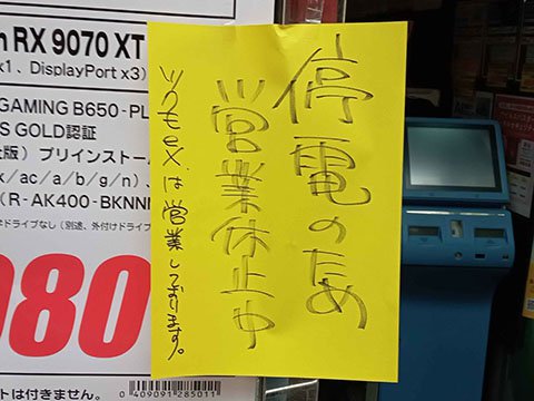 秋葉原地区で5日午後に大規模停電、複数のショップが営業を一時休止