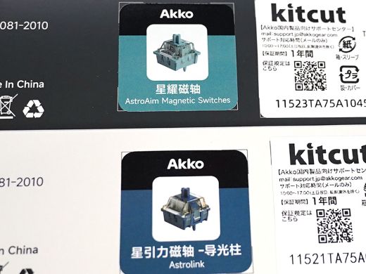 キー荷重はAstroAimスイッチが35~55gf、Astrolinkスイッチが36~46gf。キーキャップはサイドプリントPBT製で、Cherryプロファイルを採用する。