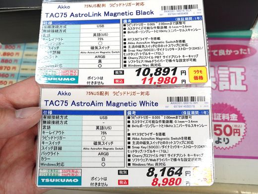 AKKOのラピッドトリガー対応ゲーミングキーボード「TAC75 HE」が、TSUKUMO eX.に入荷。
