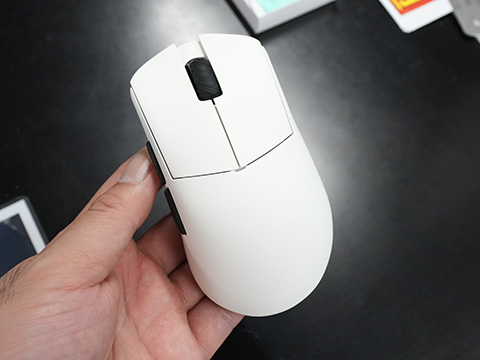 2.4GHzワイヤレス接続と有線接続に対応したモデルで、最大8,000Hzのポーリングレートに対応したMCU「Nordic 52840」を備えるほか、最高解像度30,000DPIのPixart PMW3950センサー、オムロン製光学式メインスイッチなどを搭載している。