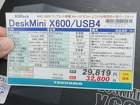 ASRockのミニベアボーン「DeskMini X600/USB4」が発売、Ryzen 9000シリーズなどに対応