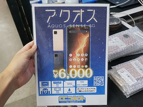 シャープの5G対応5.8インチスマートフォン「AQUOS sense5G」の中古品が、CCコネクトに大量入荷。価格は6,000円となっています。