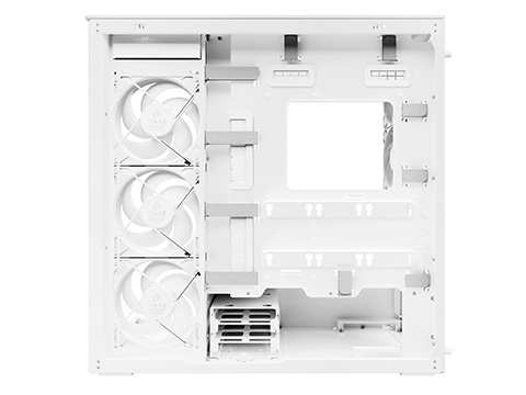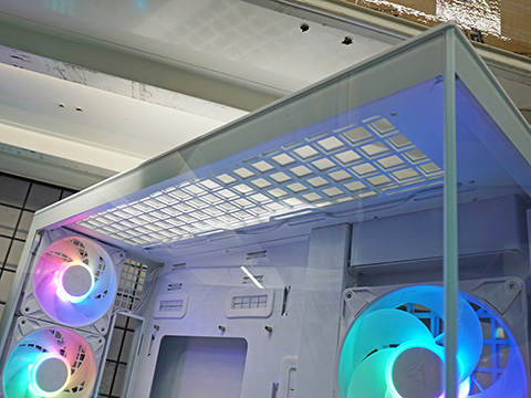 サイドに140mmファン(P14 Pro Reverse A-RGB)を3つ、リアに120mmファン(P12 Pro A-RGB)を2つ、それぞれ搭載し、ハイエンドパーツ構成でも効率的な冷却が可能としている。また、大型の強化ガラスパネルによりクリアな視界を確保したという。