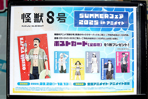 アニメイト秋葉原では、「怪獣8号」(10月13日(月)まで)や「ディー・グレイマン」(11月16日(日)まで)の関連グッズ・書籍購入でノベルティが貰えるフェアが開催されていました。