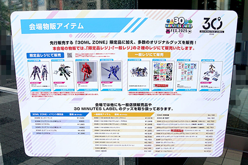 ベルサール秋葉原では、「30 MINUTES LABEL FES.2025」が開催されていました。BANDAI SPIRITSのプラモデル「30 MINUTES LABEL」シリーズのイベントで、会場限定グッズや12月以降販売される製品の先行販売なども行われ、物販エリアには長蛇の列ができていました。