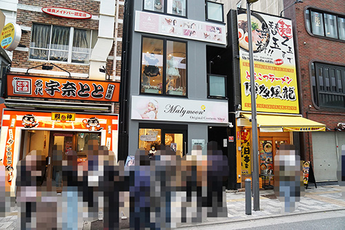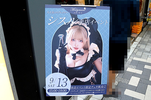 アキバ田代通り沿いのコスチュームブランド店「Malymoon秋葉原店」では、コスプレイヤー「シスル」さん来店イベントが開催されていました。