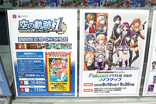 ソフマップAKIBAアミューズメント館では、「Falcomイラスト展2025出張所 in ソフマップ」が開催されていました。期間は9月30日(火)まで。
