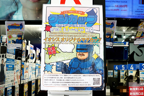 秋葉原イオシス買取センターでは、5,000円以上の買い物でイオシスオリジナルマグカップが当たるくじ引きが行われていました。