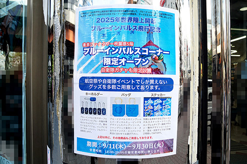 書泉ブックタワーの5階に「ブルーインパルスコーナー」が限定オープン。航空祭や自衛隊イベントでしか買えないグッズを販売するほか、自衛隊ガチャも限定設置。開催期間は9月30日(火)まで。
