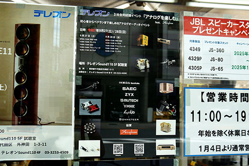 テレオン第2店は、9月27日(土)・28日(日)に開催予定の3社合同視聴イベント「アナログを楽しむ」を告知していました。