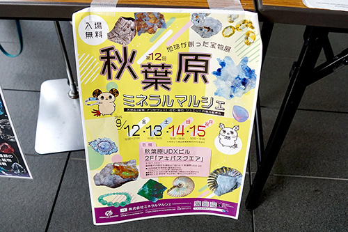 秋葉原UDX2階のアキバスクエアでは、「第12回 秋葉原ミネラルマルシェ」が開催されていました。天然石・化石・ジュエリーや隕石まで幅広く展示販売をするイベントで、多くの人で賑わっていました。