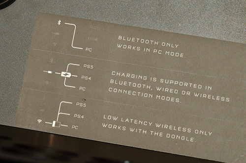 接続は、有線(USB)、専用ドングルによる2.4GHzワイヤレス、Bluetoothの3種類の方式に対応する。有線・2.4GHzワイヤレス接続時のポーリングレートは最大1,000Hz。PlayStation公式ライセンス製品としてPS5とPS4に対応し、もちろんPCでも使用できる。