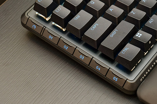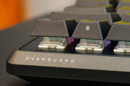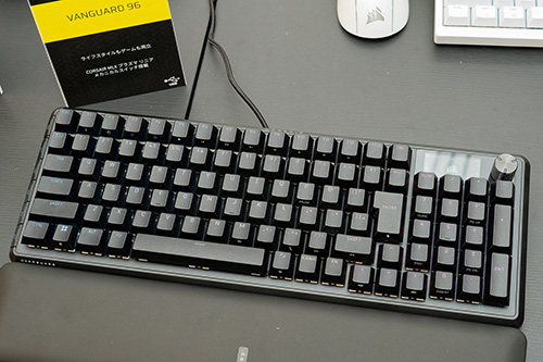 VANGUARD 96とVANGUARD PRO 96の違いは主にキースイッチ周りとなる。VANGUARD 96は、日本語配列がアクチュエーションポイント2.0mm固定、キーストローク8,000万回に耐える「CORSAIR MLX プラズマ リニアメカニカルスイッチ」を採用。また、同スイッチに加えて計4種類のキースイッチを選択可能なUS配列も用意する。