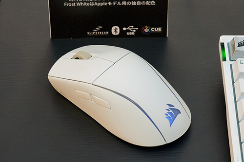 1億クリックに耐えるメカニカルスイッチを採用するほか、1,000Hz時で70時間、8,000Hz時で16時間というスタミナ動作も特徴。「CORSAIR Web Hub」にも対応する。
