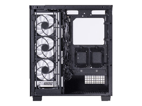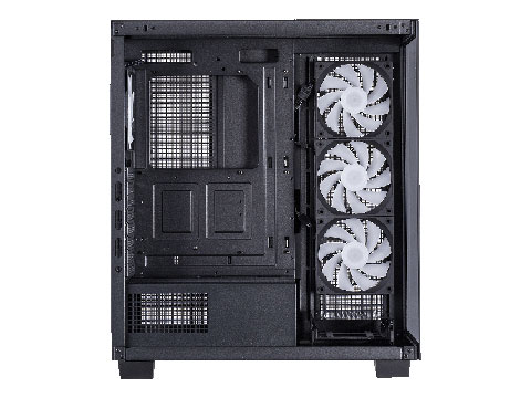 ケースファンは、トップに120mm/140mm×3、サイドに120mm×3、リアに120mm×1が搭載可能で、サイドに3基、リアに1基の120mm ARGBファンを標準で搭載している。このほか、水冷システムにも対応し、トップとサイドは最大360mm、リアは120mmのラジエーターを搭載することができる。