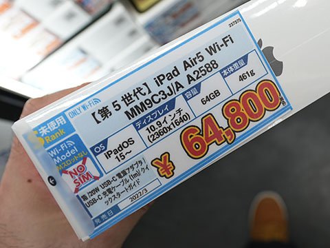 アップルの「iPad Air(第5世代)Wi-Fi 64GB」の未使用品が、イオシスでセール中。