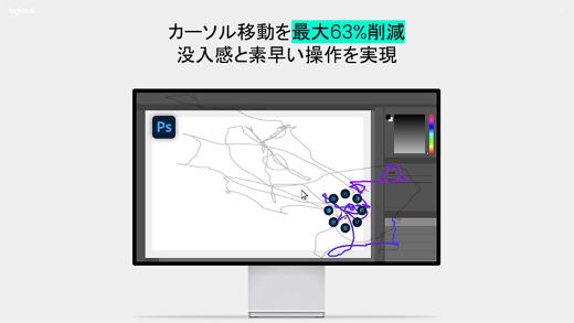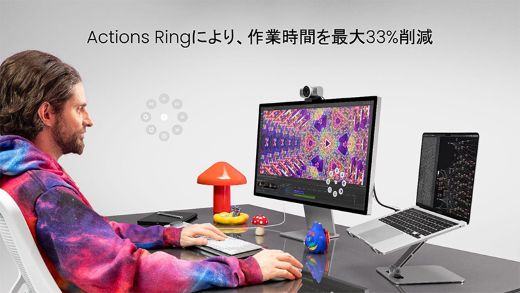 Logi Options+との連携で、カーソル位置を基準としたリング状のフローティングショートカットボタンが使える「Actions Ring」に対応。同社ではカーソル移動を最大63%、作業時間を最大33%削減できるとアピールしている。