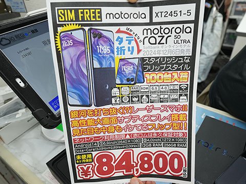 モトローラの折りたたみスマホ「razr 50 Ultra」が84,800円、未使用品セール