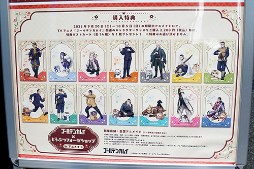 アニメイト秋葉原2号館の7階では、「ゴールデンカムイ×どうぶつフォーゼショップ」が開催されていました。「ゴールデンカムイ」のキャラクターを動物風にデフォルメしたグッズなどを販売、開催期間は10月5日(日)まで。