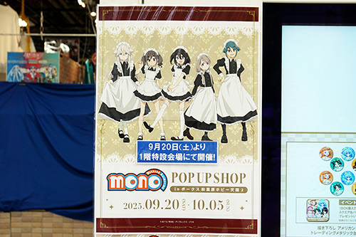 ボークス秋葉原ホビー天国2の1階特設コーナーでは、TVアニメ「mono」のポップアップショップが開催されていました。イベント用描き下ろしイラストを使用したグッズの販売や、パネルスタンドの展示を実施。開催期間は10月5日(日)まで。