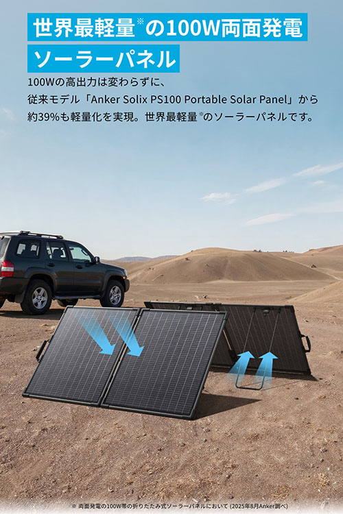 このほか、世界最軽量をうたう100Wソーラーパネル「Anker Solix PS100 Dual Portable Solar Panel」の予約受け付けも始まっている。