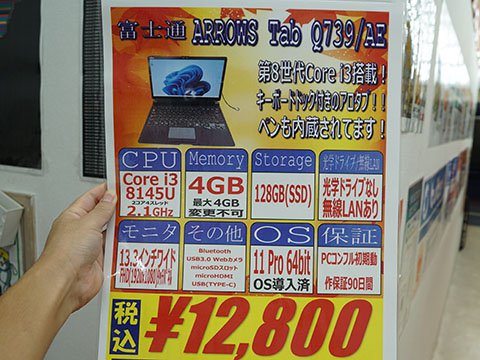 富士通のWindowsタブレット「ARROWS Tab Q739/AE」が12,800円、中古PCセール