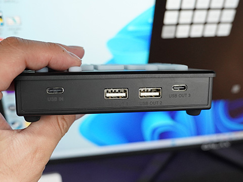 USBハブ機能(Type-A×2、Type-C×1)、LEDライトも搭載されている。LEDライトについては、光り方の切替・明るさ調整に対応し、操作状況を把握しやすいとしている。