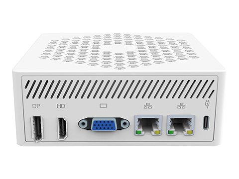 高性能ファンレスミニPCとうたっており、リモートワークやオフィス用PCの省スペース化などに最適としている。本体のサイズはD123×W123×H45mm、重量は約542g。