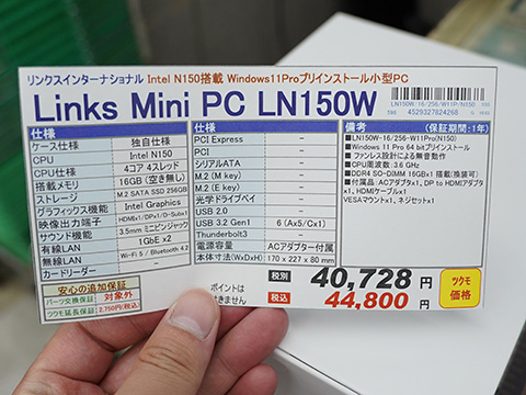 奥行き・幅123mm、高さ45mmのIntel Processor N150搭載ファンレスPC「LN150W」(型番:LN150W-16/256-W11Pro(N150))がリンクスインターナショナルから発売された。