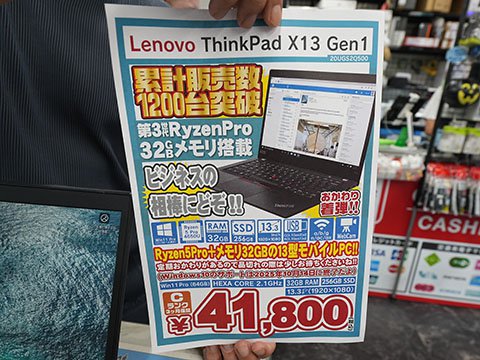 Ryzen 5 Proやメモリ32GB搭載の「ThinkPad X13 Gen1」が41,800円、中古PCセール
