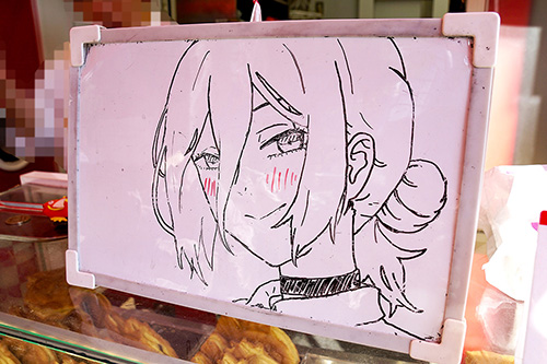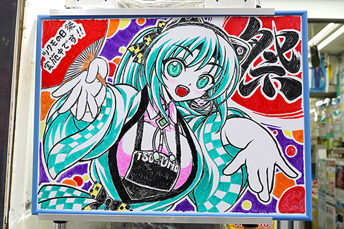 取材中に見かけたホワイトボード・黒板アートをご紹介。ツクモパソコン本店では、開催中の「ツクモの日祭り」をアピールするイラストが掲載されていました。