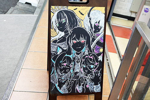 FandomAkibaの店頭黒板は、ホロライブ所属VTuber「常闇トワ」の2nd ソロライブを祝うイラストになっていました。