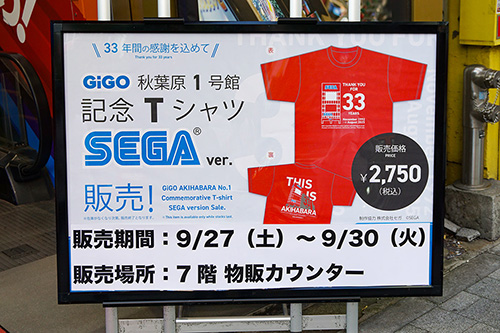 GiGO秋葉原3号館では、GiGO秋葉原1号館の閉館直前に販売を行っていた「GiGO秋葉原1号館記念Tシャツ」が9月27日~9月30日の間で再販されていました。
