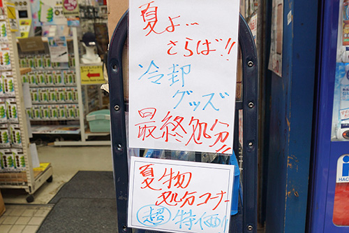 浜田電機では、夏物処分と題してネッククーラーやスマホ用冷却グッズなどの処分セールが行われていました。暑さもようやく和らいできましたね。