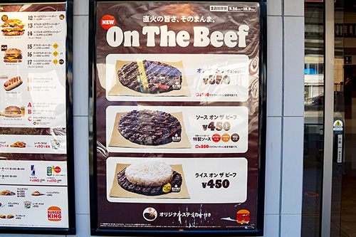 バーガーキング 秋葉原昭和通り店では、10月9日(木)までの限定販売で「On The Beef」が販売されていました。バーガーキングの直火焼き100%ビーフパティだけを楽しむような一風変わったメニューとなっています。
