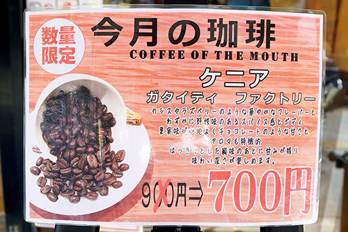 喫煙喫茶 銀座和蘭豆 秋葉原店では、「今月の珈琲」と題してケニア ガタイティ ファクトリーのコーヒーが数量限定で販売されていました。