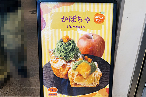 PIE mania アキバ・トリム店では、季節限定メニューの「Apple Cup かぼちゃ」が販売されていました。このほかにも、「紫芋モンブラン」や「スイートポテト」など秋らしいメニューが販売されているので、一度食べてみてはいかがでしょうか。