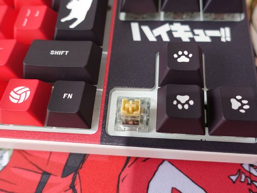 キーキャップは熱昇華印刷PBTで、スクールアイコンと横断幕デザインのボーナスキーキャップも付属する。