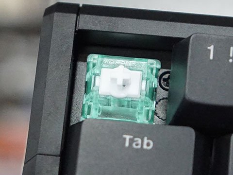 キースイッチはGateron Jade Proで、入力調整範囲は0.05mm-3.3mm(0.001mm刻み)、ラピッドトリガー調整範囲は0.001-3.3mm(0.001mm刻み)。8KポーリングとNキー32kHz単キー256kHzのスキャンレートで0.08msの低遅延をうたう。