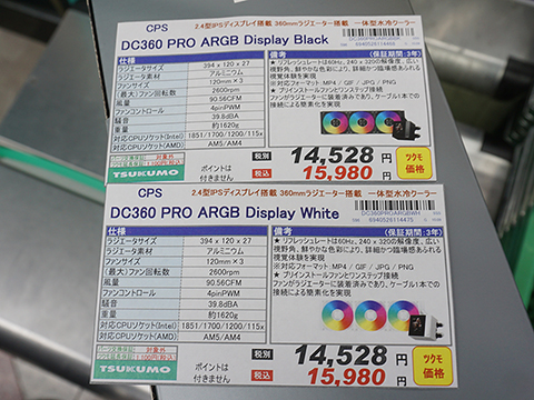 2.4インチIPSディスプレイや360mmラジエーターを搭載したCPSブランドの簡易水冷CPUクーラー「DC360PRO-ARGB-BK」「DC360PRO-ARGB-WH」が発売された。本体カラーは前者がブラック、後者がホワイト。