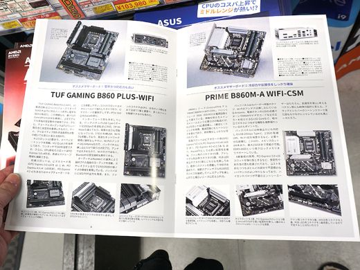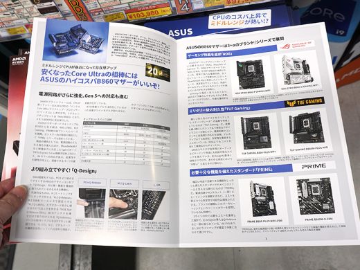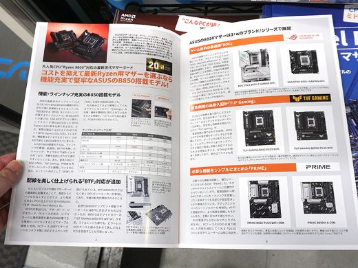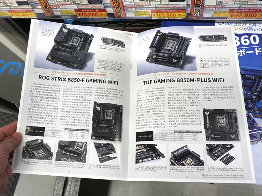 秋葉原のPCパーツショップ店頭で、AKIBA PC Hotline!編集の「ASUS AMD B850/Intel B860マザーボードカタログ」の無料配布がスタート。