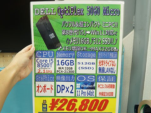 DellのミニPC「OptiPlex 5060 Micro」が26,800円、16GBメモリ + 512GB SSD搭載の中古品