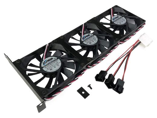 N-PCIFSTY8015-F3は、PCIブラケットに装着できるファンステイと80mmファン3基のセット。