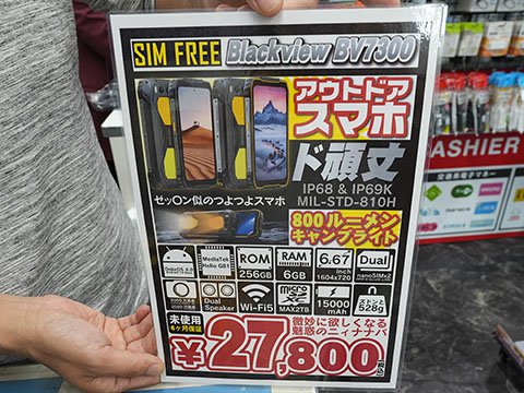 アウトドア利用向けのタフネススマートフォン「Blackview BV7300」が、イオシス アキバ中央通店でセール中。