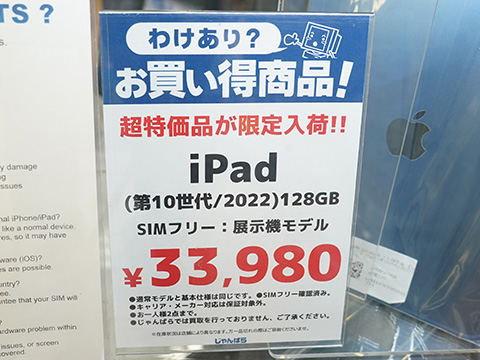 Apple製スマートフォンやタブレットの訳あり品セールがじゃんぱら秋葉原5号店などで実施中です。