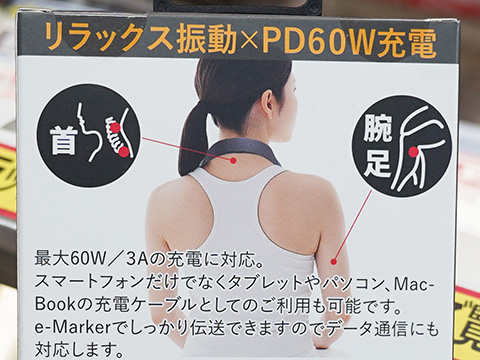 首、肩などをリラックスできるという振動モーター搭載USB Type-Cケーブル「Re・Motion3」(型番:MS-CC60W140-BK)がエアリアから発売された。