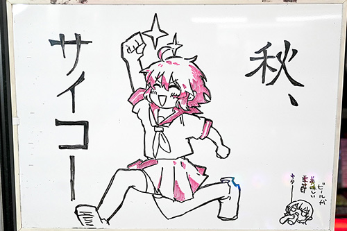 アク子「秋、サイコー」、パソコンショップアークのホワイトボード