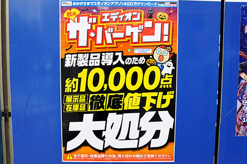 エディオンAKIBAでは、「秋のザ・バーゲン」が実施中。新製品導入の為、展示品や在庫品を徹底値下げの大処分セール。期間は11月3日(月)まで。