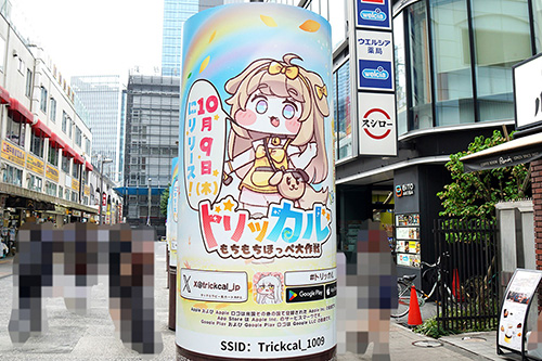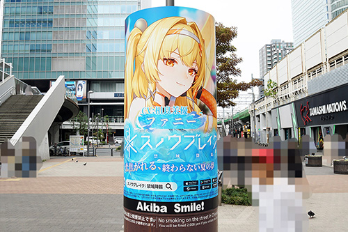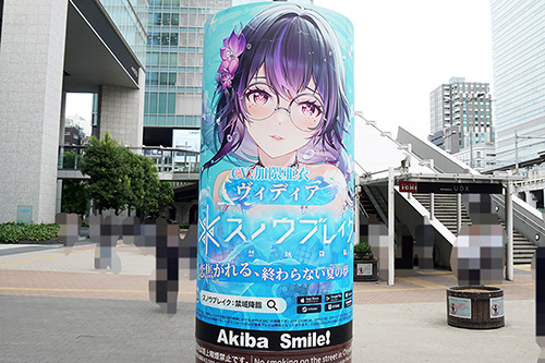 JR秋葉原駅 電気街口西側広場の円柱広告が更新。「トリッカル・もちもちほっぺ大作戦」と「スノウブレイク:禁域降臨」、2種類のゲームの広告が設置される珍しい形になっていました。