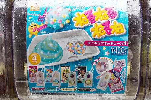 まずは取材中に見かけたカプセルトイをご紹介。知育菓子「ねるねるねるね」をミニチュアキーチェーンにしたカプセルトイの第4弾が登場していました。